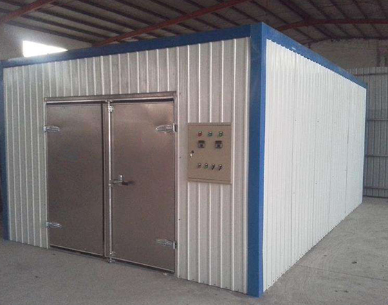 - 啟動加熱機組,待烘房溫度升至50℃左右時,將裝有物料的推車推進烘干房內。